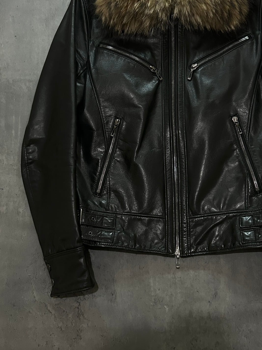 00's TÊTE HOMME - fur collar double-zip leather jacket
